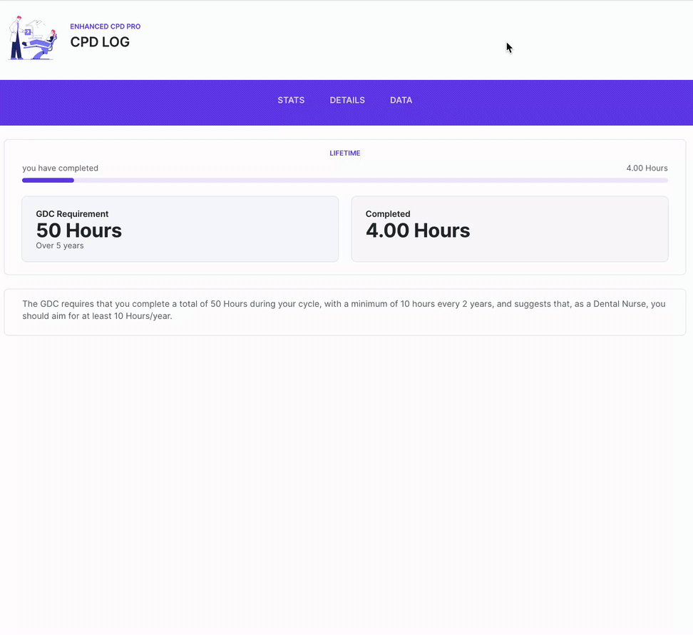 Maintaining a detailed log of your activities doesn't have to be tedious. Our app turns record-keeping into a breeze. All completed courses, their details, and certificates are neatly organised in one place. Even certificates from external sources can be uploaded, offering a holistic view of your achievements. Get real-time statistics on completed hours and import records from other CPD providers.