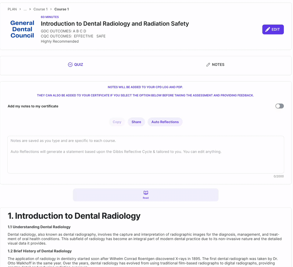 Transform your learning experience into a journey of self-discovery and growth. Our AI intuitively interacts with your course's content, helping you generate profound reflective notes. It's designed to inspire your thoughts, not replace them, sparking deeper insights into your experiences, outcomes, and future practice. With our app, you're not just learning - you're evolving, becoming more insightful and adaptable. Engage with your reflections today, for a more knowledgeable tomorrow.
